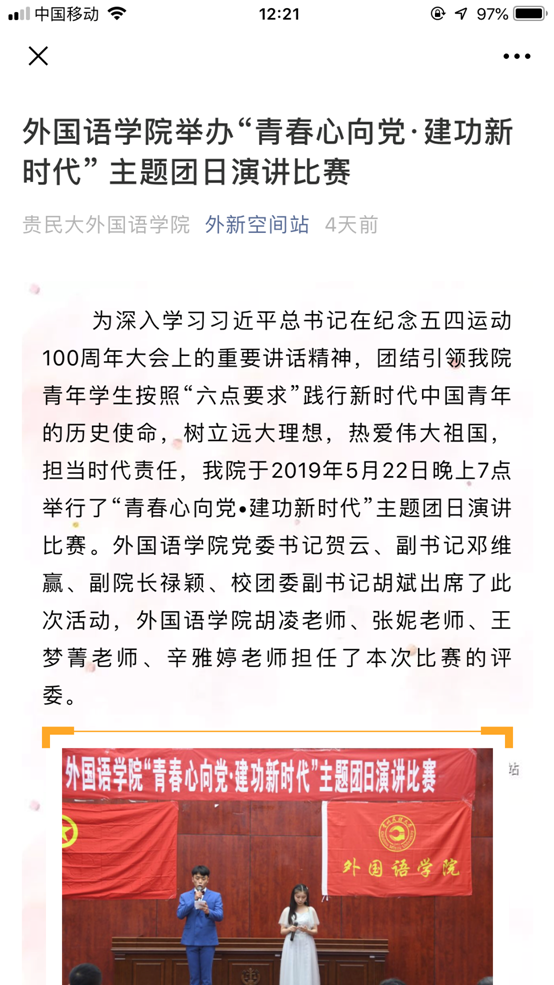 最后,我院将此次团日活动的开展情况在我院主页、官方微博、官方微信进行了宣传,并投稿到了学校党委宣传部,以求扩大宣传,进一步增加此次活动的影响力。