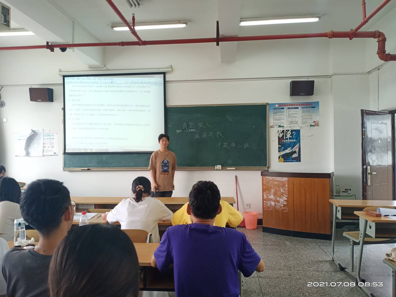 本次活动通过观看视频,原文阅读讲话内容等方式学习了习近平总书记在庆祝中国共产党成立一百周年大会上的重要讲话精神。习近平总书记重要讲话,站在政治和战略高度,统揽全局、纵贯百年、远眺未来,深刻阐发了一系列重要思想、重要论断、重要要求,彰显了中国共产党的政治品格、精神谱系、光荣传统、红色血脉,展现了中国共产党的政治担当、历史自觉、人民立场、复兴使命,是指引全党全国人民立足百年大党的新起点。另一方面,各班在观看中国共产党成立一百周年大会共青团员和少先队员代表集体致献词相关视频的基础上,部分团支部还通过朗诵等形式再现了共青团员和少先队员代表集体致献词,共同许下请党放心,强国有我青春誓言的场景。