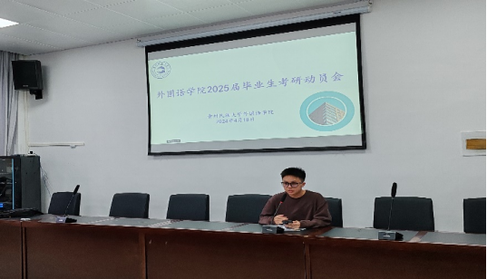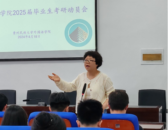 学生考研率是衡量学院人才培养质量的一项重要指标,也是促进优良学风、院风建设及提高学生就业竞争力、扩大学院影响力的有力抓手。为营造浓厚的考研氛围,切实加强对学生考研的指导与服务,提高学院考研的数量和质量,有力助推学院高质量发展,外国语学院于2024年4月18日晚上18:00在北校区易游网页版416会议室举行2025届毕业生考研动员大会。会议由易游网页版副院长赵艳主持,出席此次会议的还有学院日语系系主任李海老师、各辅导员、班主任。2020级部分学生代表、2021级全体学生参会。
