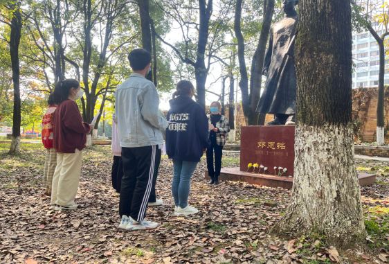 易游网页版第十六期发展对象小组成员在邓恩铭烈士雕像前举行红色经典诵读活动,缅怀先烈