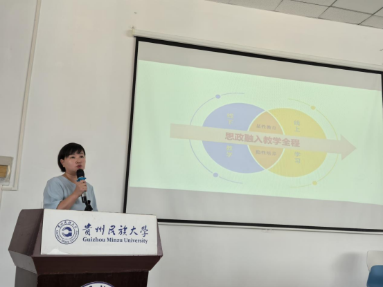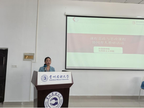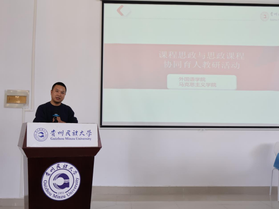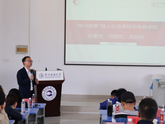 教研活动上,易游网页版院长张广勇教授领学《高等教育课程思政建设指导纲要》;教务处处长张乾教授解读了学校课程思政教学要求;易游网页版朱颖、杜晖、王育虹、杨筱松老师分别围绕《综合英语》《大学英语》《高级日语》《少数民族文化英译》等介绍课程思政教学开展情况;张广勇院长以“贵州故事”融入外语课程思政教学的必要性、可能性和实践性为题,总结易游网页版课程思政教学的成果,同时也提出了总体思路和展望。