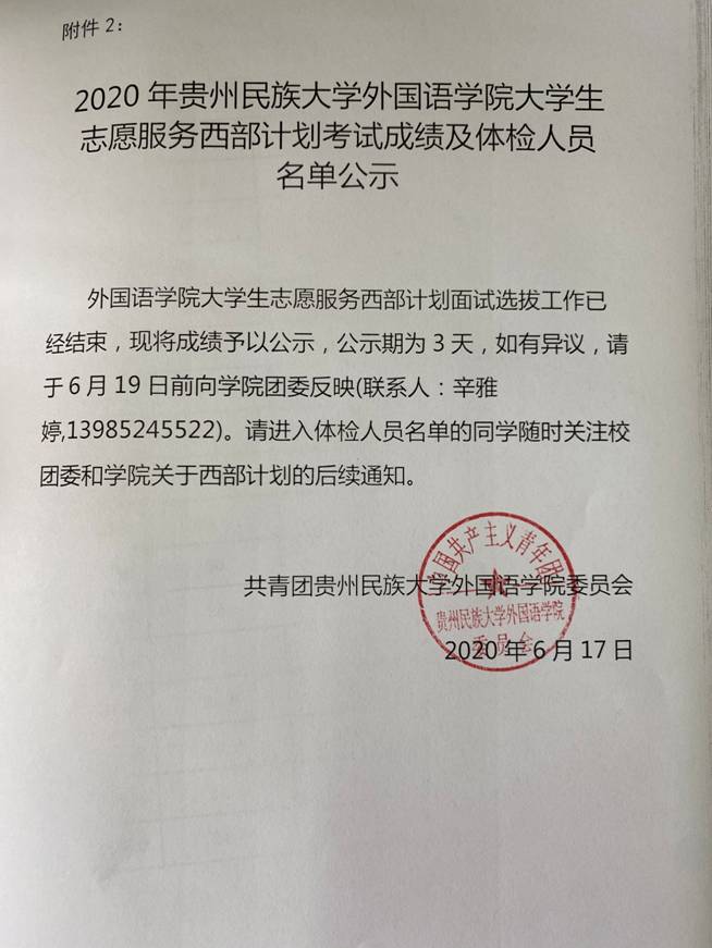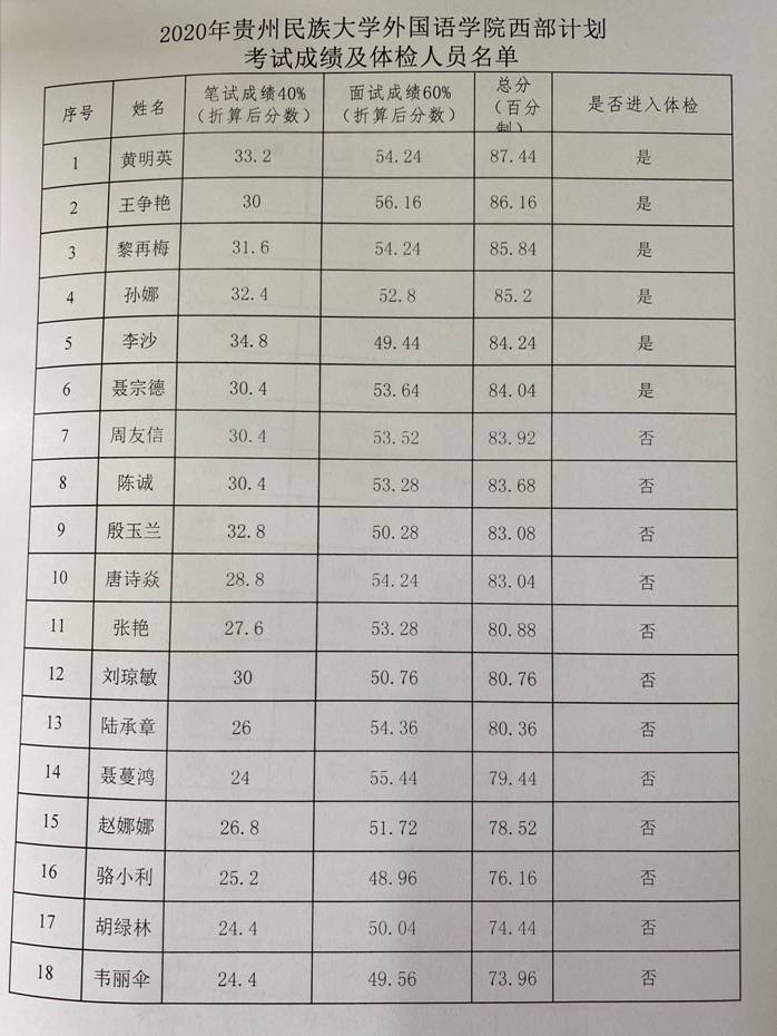 2020年易游网页版大学生志愿服务西部计划考试成绩及体检人员名单公示